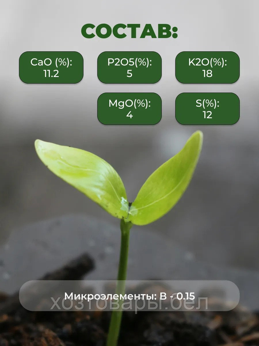 Фосфорно-калийное удобрение предназначено для внесения под огородные, садовые и декоративные культуры. Эффективно использовать осенью при перекопке почвы, при закладке посадочных ям, для подкормок в период плодоношения и в конце вегетации.