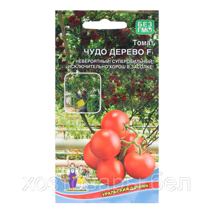Этот чудо-гибрид относится к кистевым томатам, отличается мощностью и сильным ростом. В теплицах, при интенсивном минеральном питании, в условиях достаточного тепла и света, его можно выращивать, как огромное томатное дерево. Кисти красивые, с 5-6 выровненными плодами в каждой. Плоды округлые, красные, очень плотные, мясистые, массой до 40-60 гр. Ценность сорта: высокая потенциальная урожайность, длительный период отдачи урожая, высокая устойчивость к болезням, пригодность для промышленного выращивания.