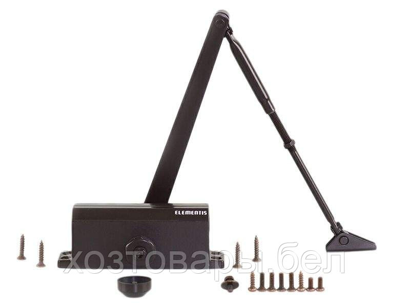 Доводчики для дверей Elementis относятся к категории доводчиков верхнего расположения с рычажной тягой. Они отличаются простотой монтажа и устанавливаются на двери шириной до 950 мм и весом до 75 кг.