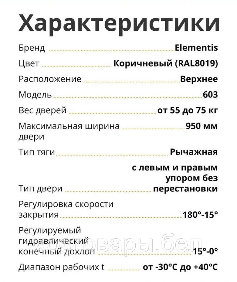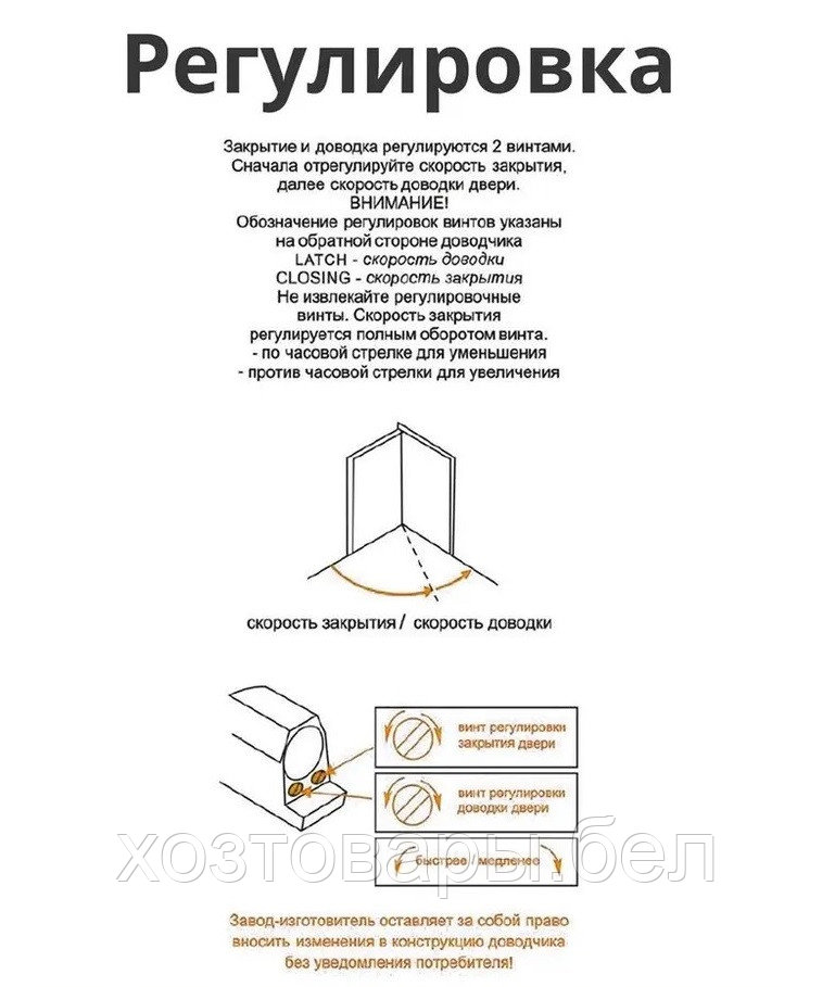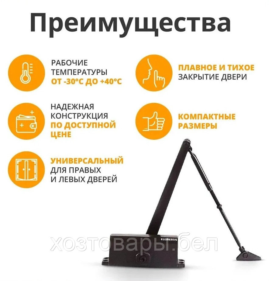 Компактный Широкая цветовая гамма Качественный бюджетный доводчик Универсальный для правых и левых дверей Технические характеристики