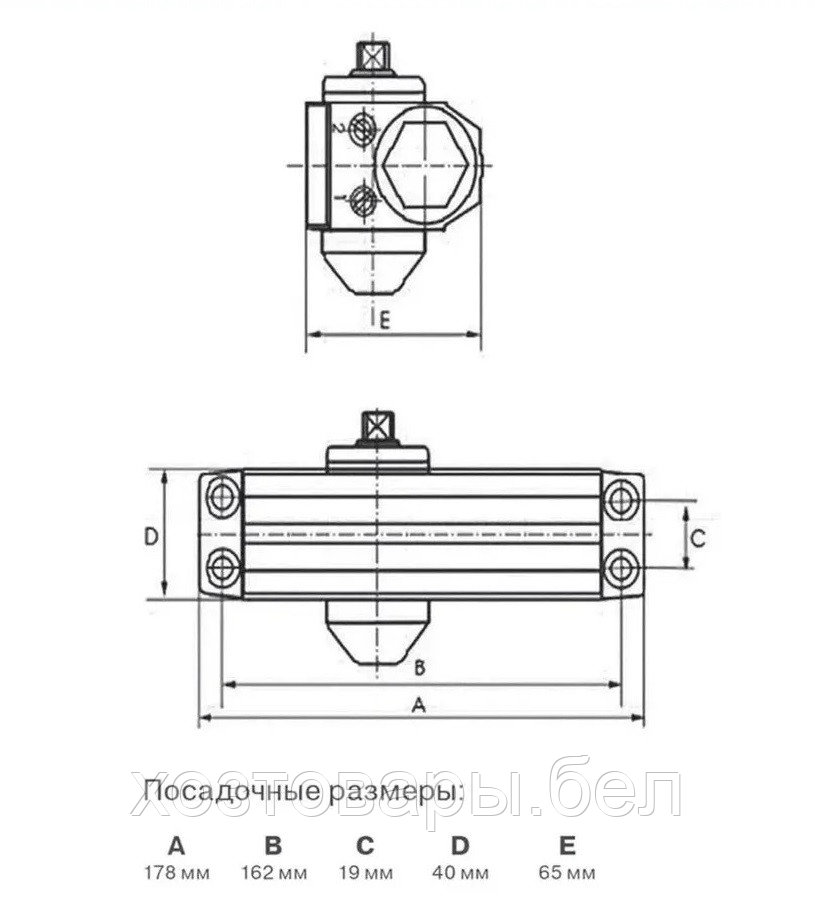 Ступенчатая регулировка силы закрывания EN3 простым поворачиванием кронштейна подшипника для рычажной тяги или смещением доводчика Регулировка скорости закрытия 180° - 15° Регулируемый гидравлический конечный дохлоп 15° - 0° Диапазон рабочих температур от -30°С до +40°С Комплектация